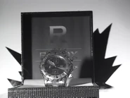 También conocido por el nombre completo de: ''Relox 8.000 de oro, bañado en súper oro, con incrustaciones de diamantes y engranajes de plastigoma''.